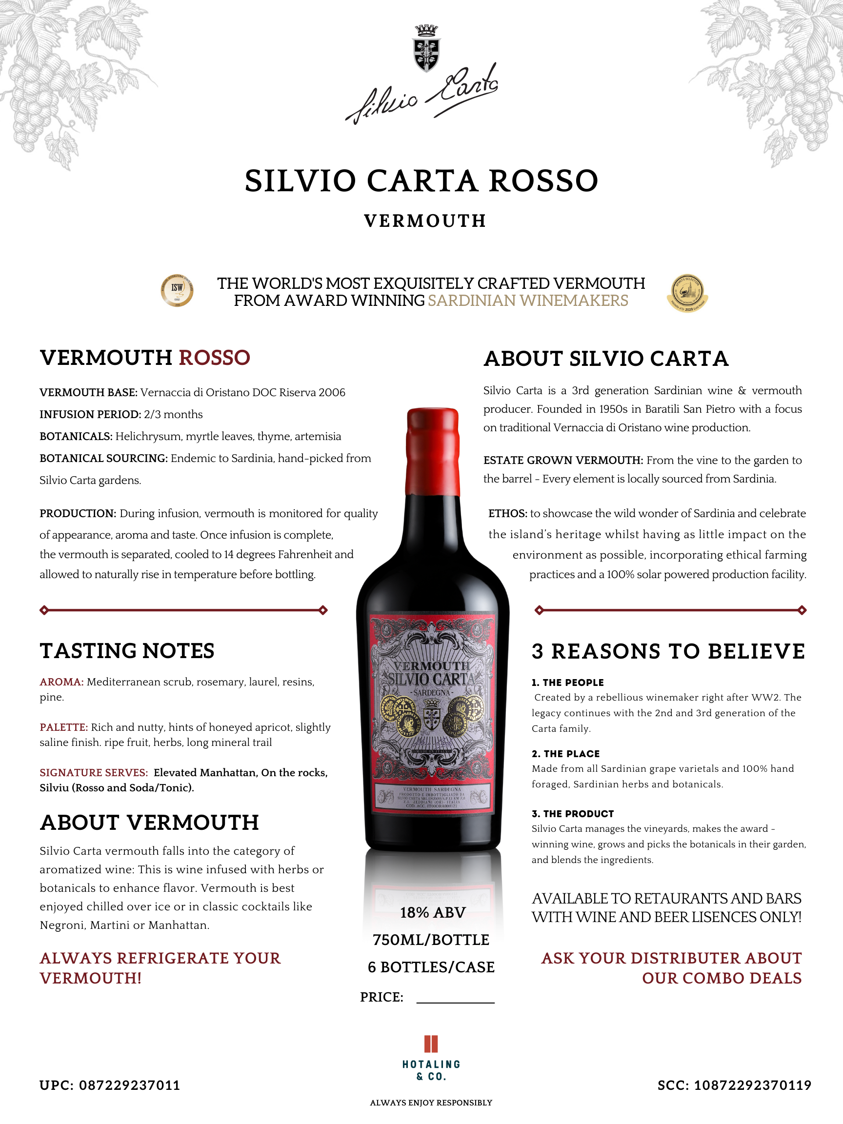 18% View All Silvio CartaThe world’s best vermouth, made with a base of 12-year aged award-winning DOC Vernaccia di Oristano - a sip of aromatic elegance.