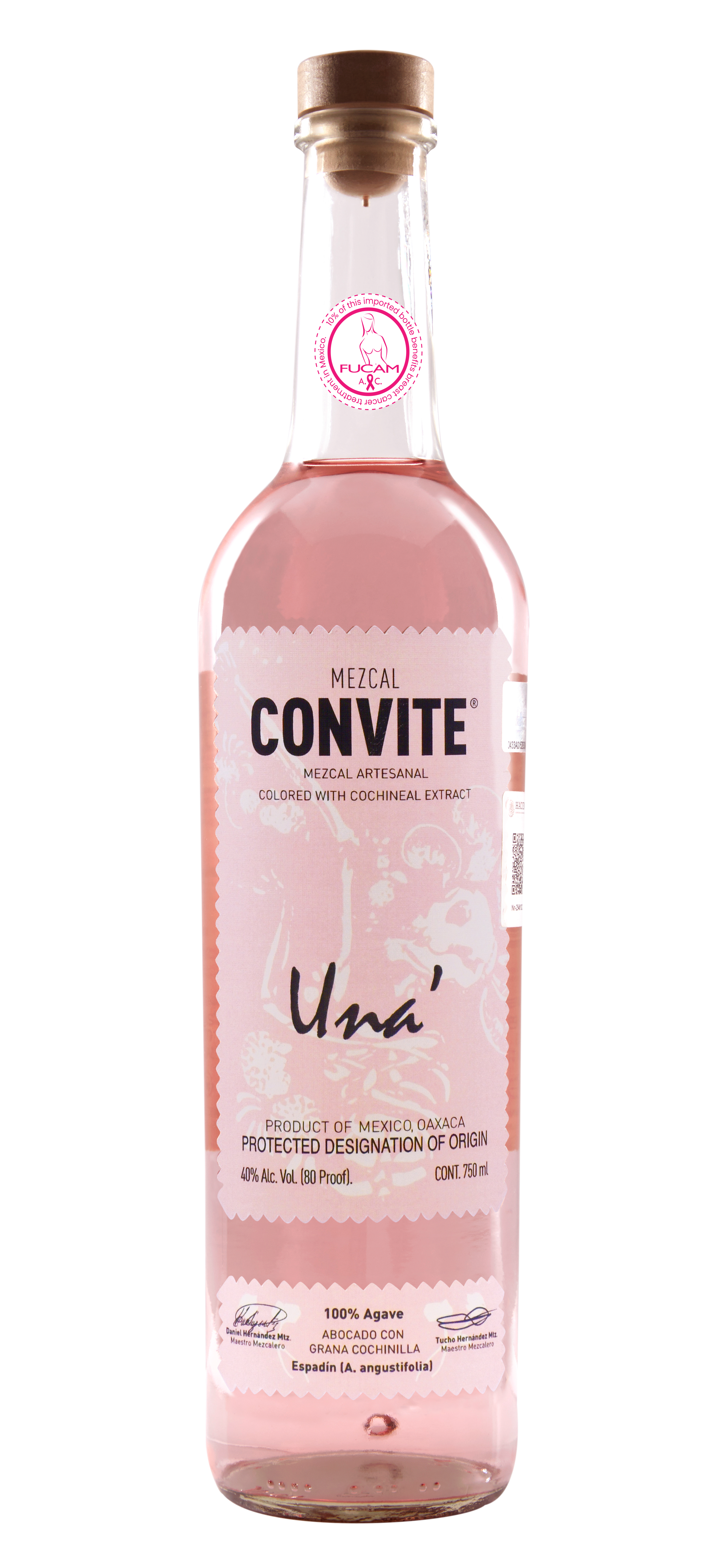 Convite Una is made from Espadín agaves with a maturity of 8+ years. Naturally tinted with Cochineal lending a distinctive pink hue. Newly launched in October 2022 for Breast Cancer Awareness Month, 10% of every bottle sold will be donated to support FUCAM, a Mexican breast cancer charity.