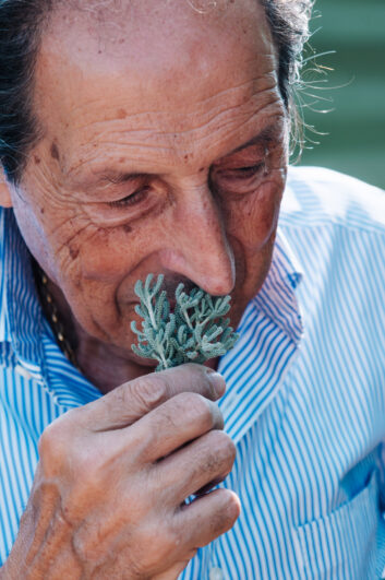 Silvio Carta manages the vineyards, makes the award-winning wine, grows, and picks the botanicals in their garden, and blends the ingredients.